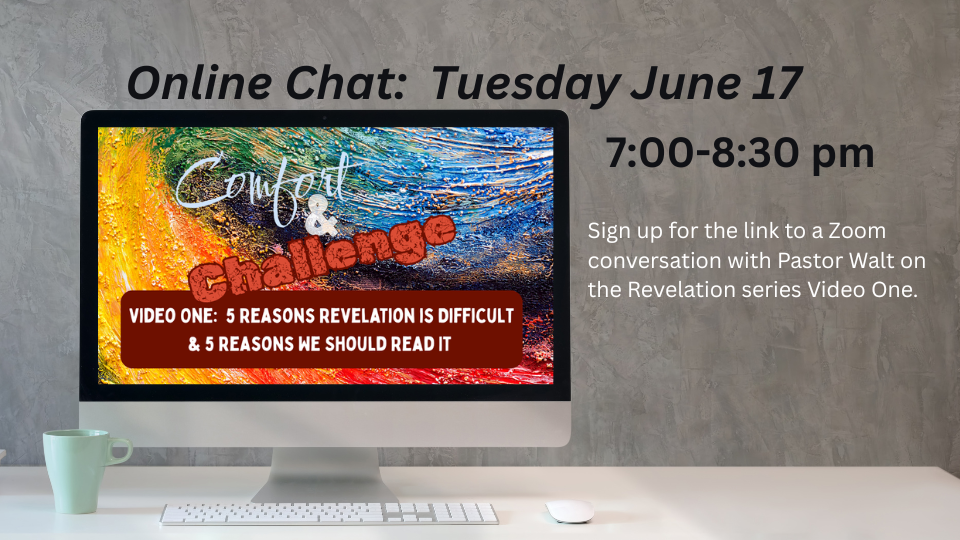 CLICK HERE to sign up for an Online Chat with Pastor Walt on his Video One for the Revelation study.