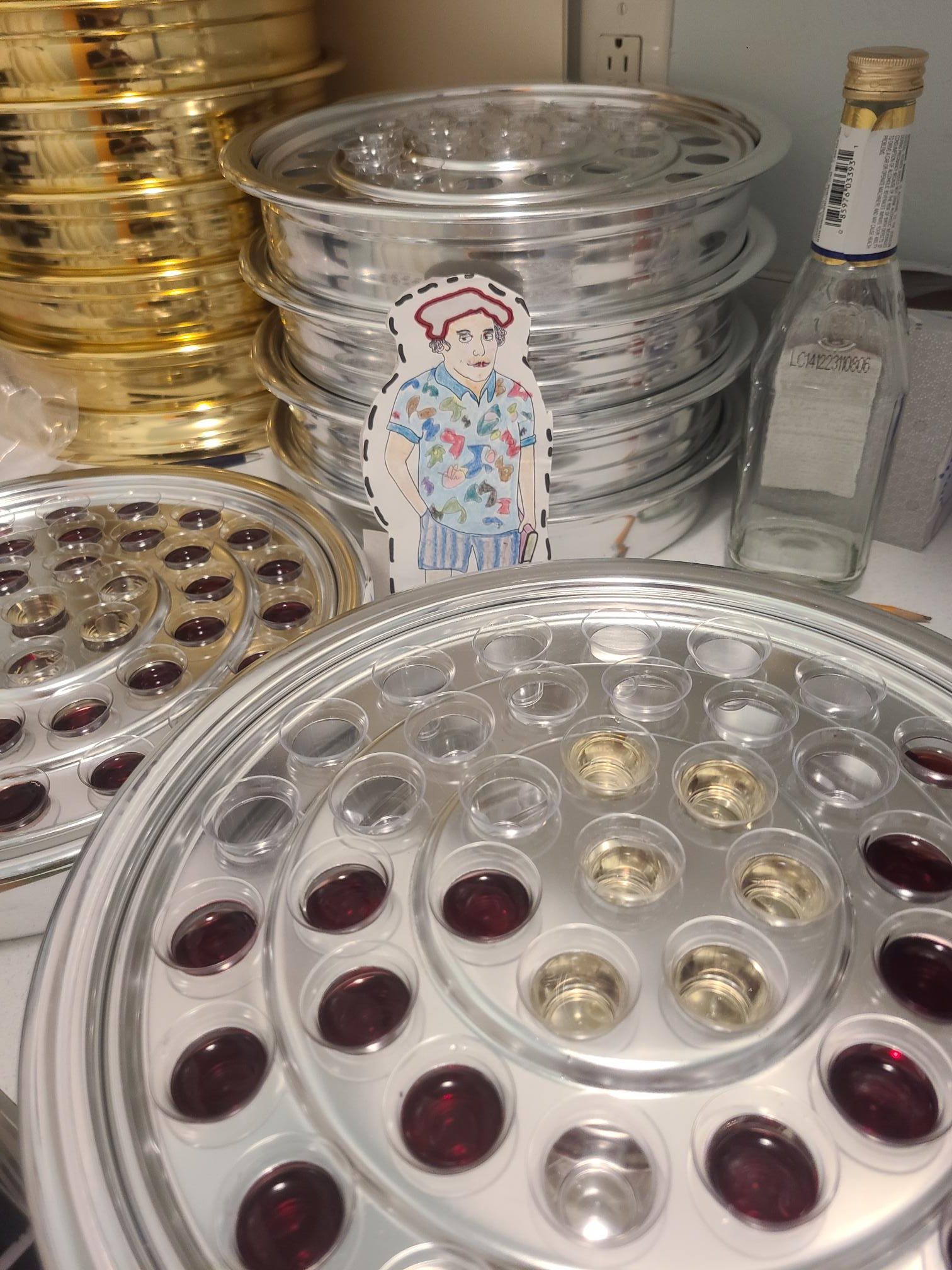 - Flat Luther helped with Altar Guild–selecting banners and filling glasses for communion.