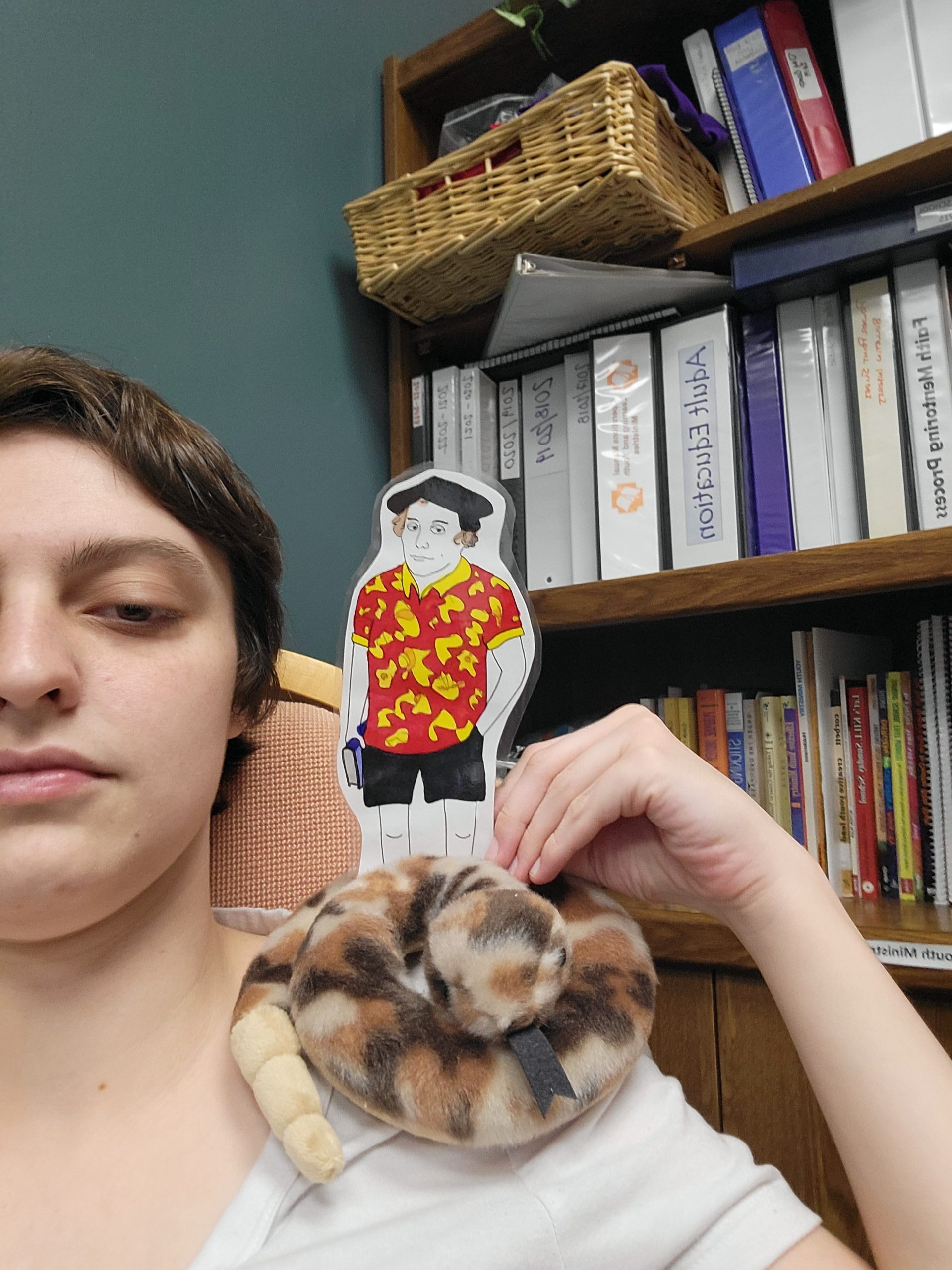 - Flat Luther gets to meet Bob Fickenscher who was our pastor at St Andrew’s Lutheran church in Stockton , CA