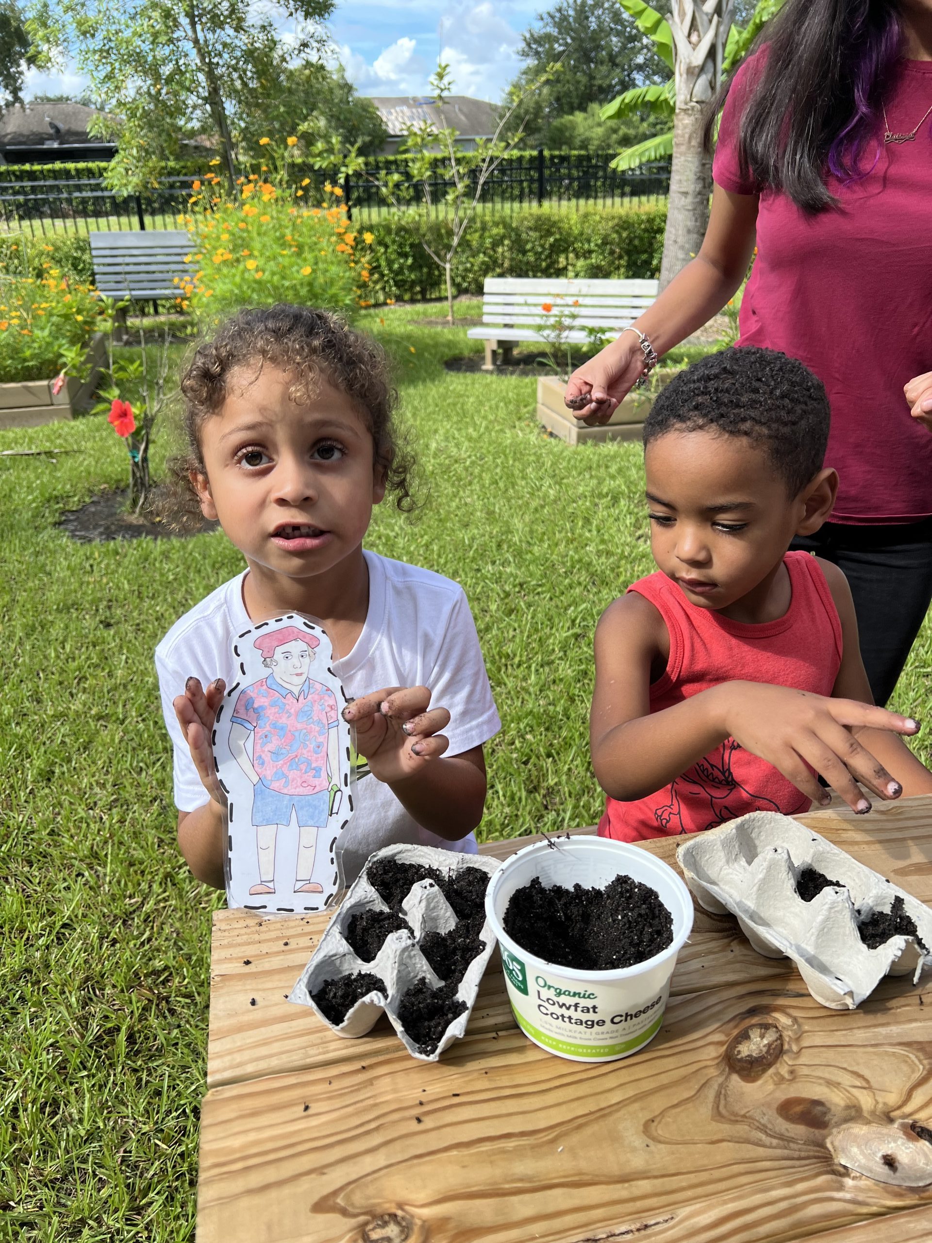 - Flat Luther helping the 3 year olds at the Guadaloupe House in Immokalee plant seeds