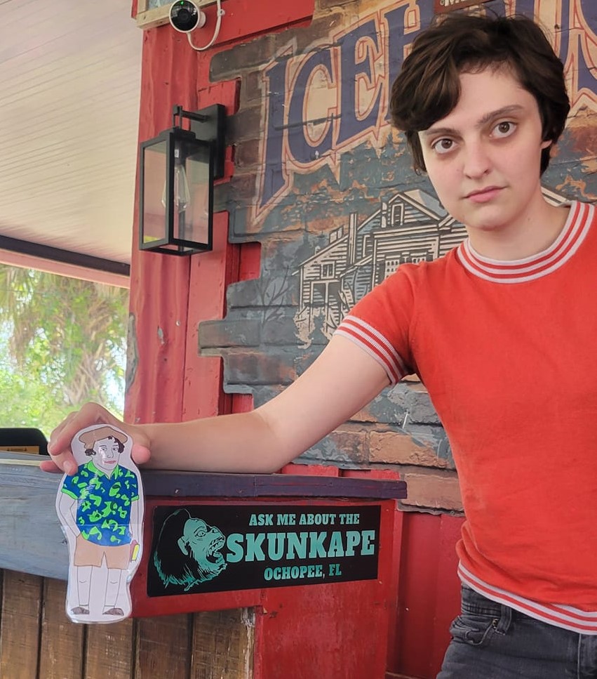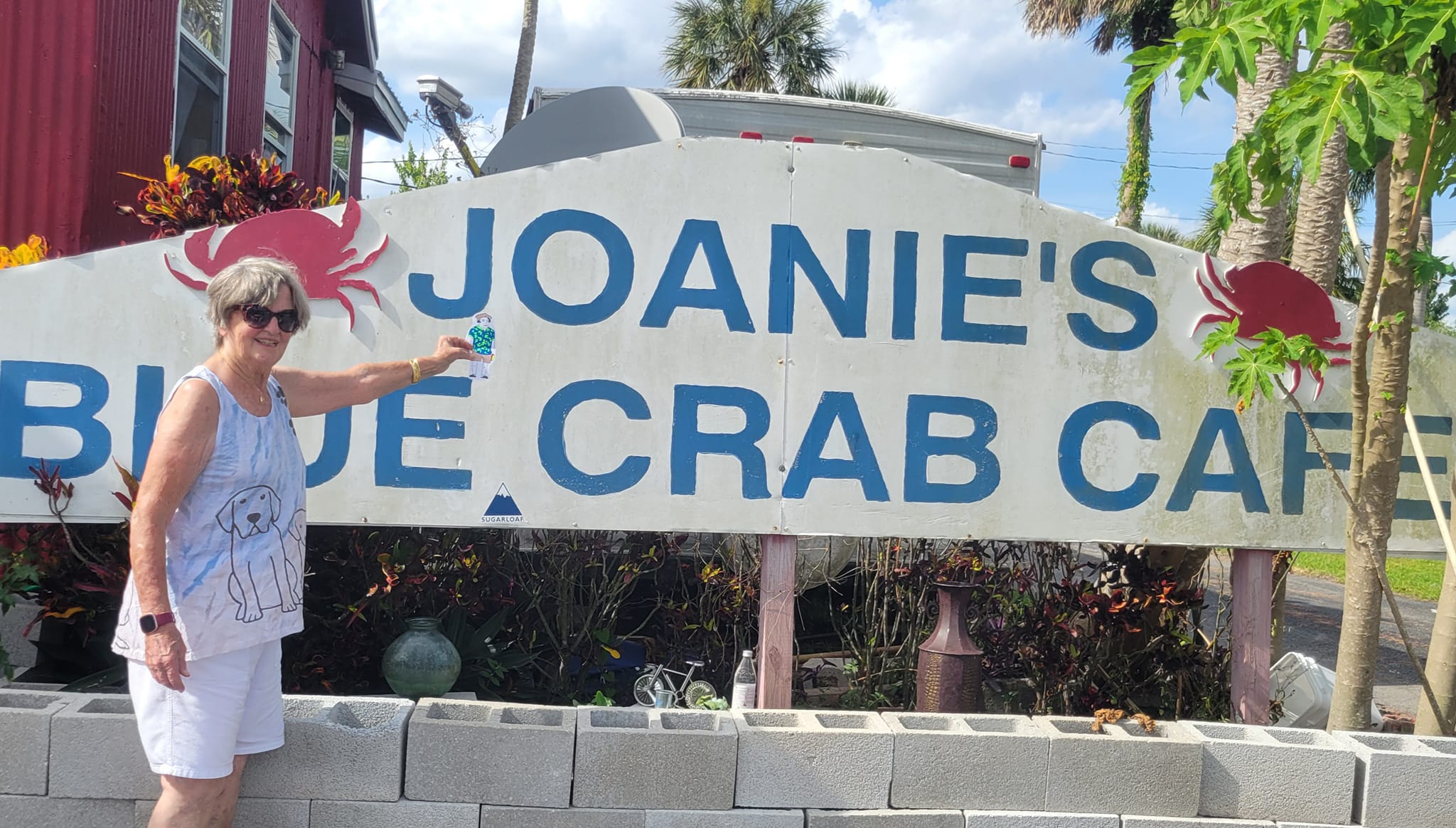 - Betty with Flat Luther outside Joanie’s in Ochopee
